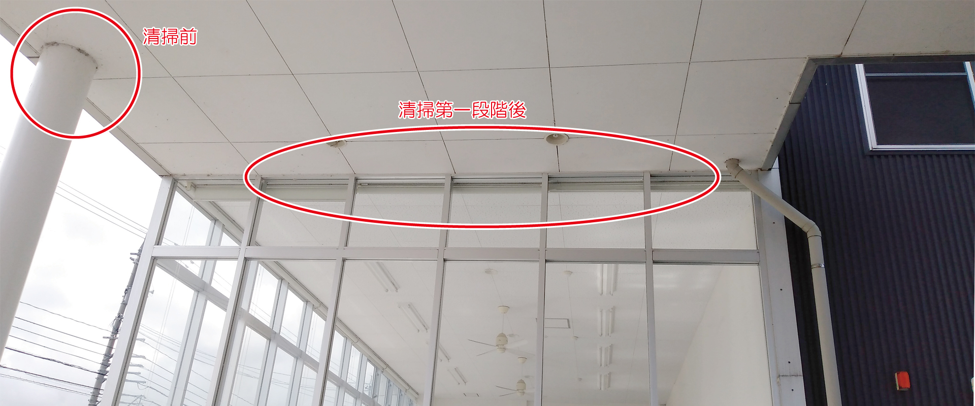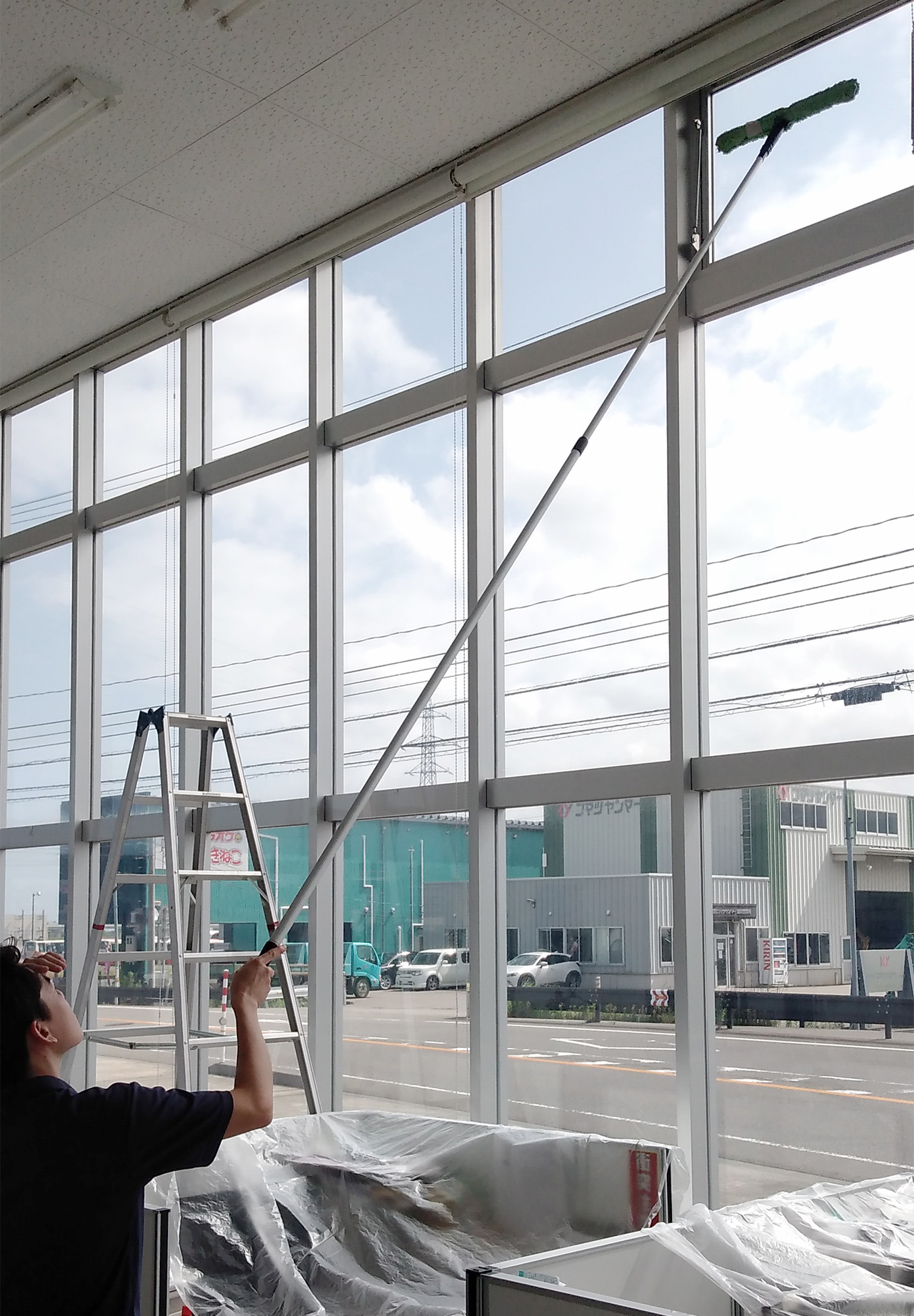 1年半ぶりの高所清掃、当社で手が届かないところはプロの手で