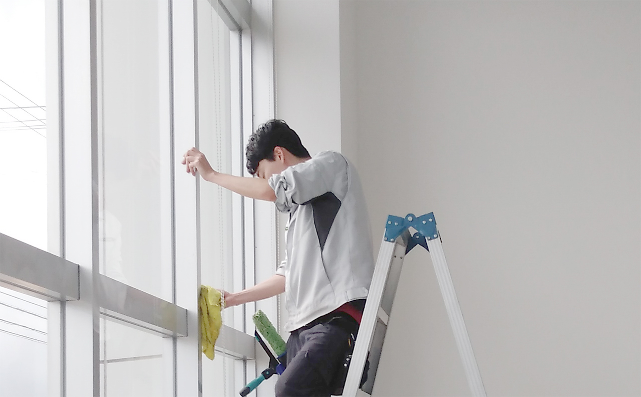 こちらは事務所内窓の清掃の様子です。