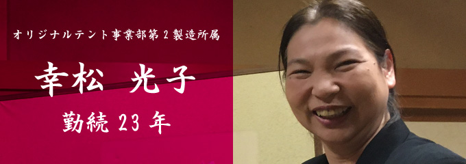 私は、入社しまして満二十年となりました。その間多くの苦労という名の良い経験をこのスガモトテントでさせていただきました。本当にありがとう御座います。これからは、年齢との勝負になりますが、健康と安全を第一に仕事に努めて生きたいです」